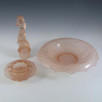 Brockwitz #6925 Art Deco Pink Glass 'Parakeet' Bird Vase